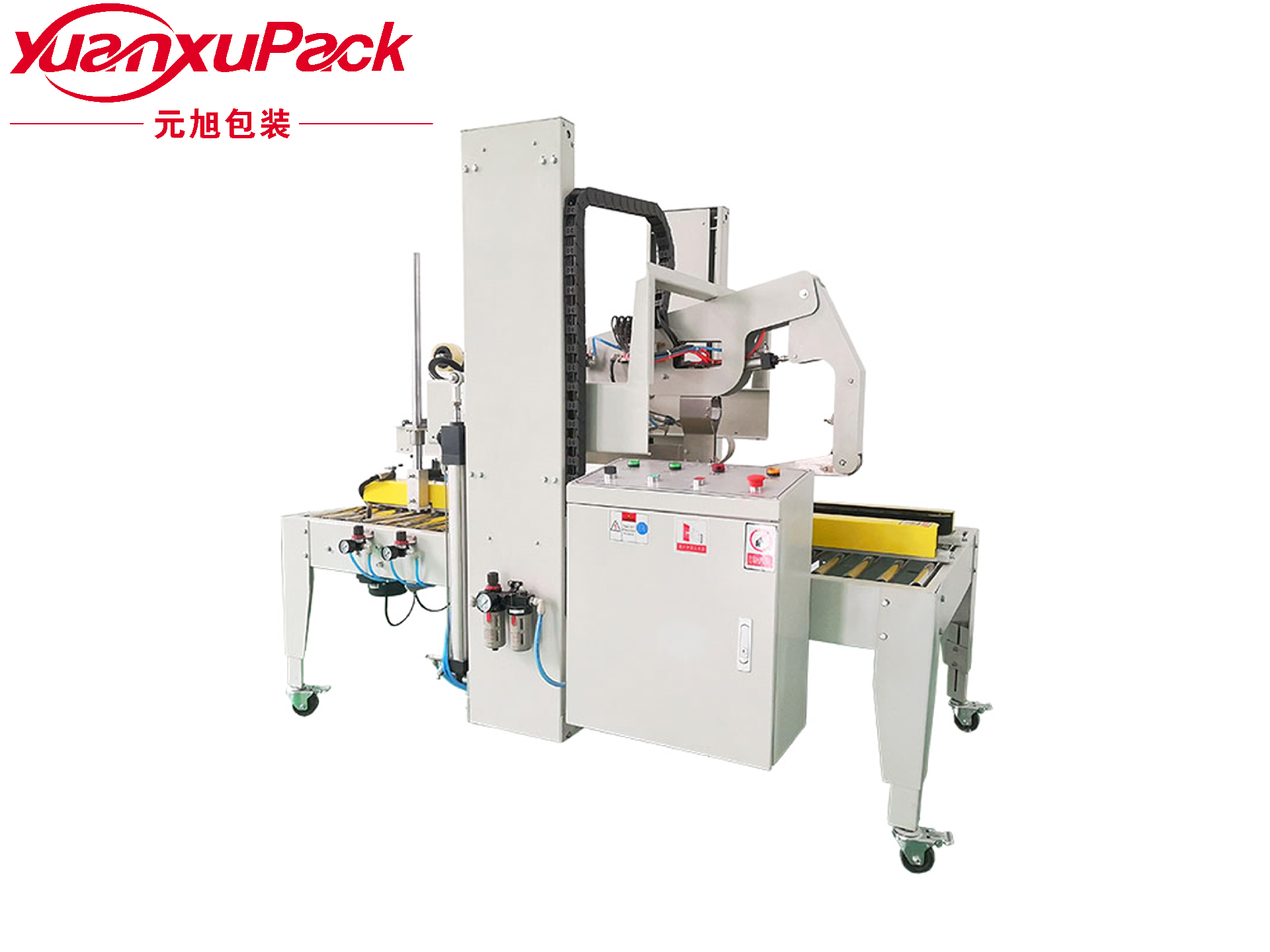 本機(jī)采用上下驅(qū)動的方式主要適用于紙箱的封箱包裝,既可單機(jī)作業(yè),也可與流水機(jī)配套使用,廣泛應(yīng)用于在家用電器、紡織、食品、百貨、醫(yī)藥、化工等行業(yè)。封箱機(jī)采用即貼膠帶封紙箱封口,經(jīng)濟(jì)快速、容易調(diào)整,可一次完成上、下封箱動作,采用印字裝置,更可提高產(chǎn)品形象。